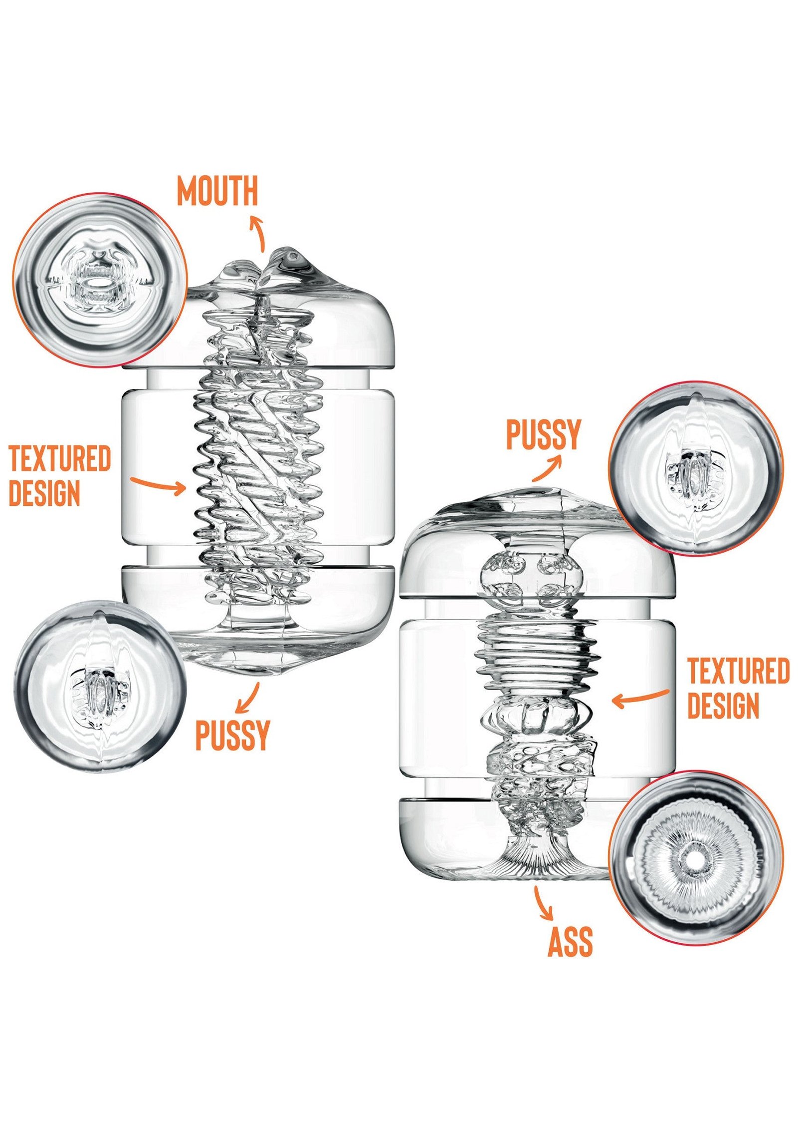 Ultimate Visual Pleasure: The Clear Triple-Sided Masturbator in a Hard Case. Experience unparalleled pleasure with PRIVATE’s Clear Dual-Sided Stroker. This innovative masturbator combines tantalizing sensations and immersive visuals in a sleek transparent case. Watch your arousal unfold stroke by stroke, thanks to the crystal-clear design providing an unobstructed view of your most intimate moments. It’s like enjoying your favorite PRIVATE movies in real time. With meticulous attention to detail, the Dual-Sided Masturbator Sleeve offers three enticing options: realistic pussy, tight ass, and juicy mouth sides. Crafted for comfort and durability, the sleeve is easily cleaned for repeated enjoyment. The sleek, travel-friendly case discreetly stores your sleeve, enhancing your visual experience. Explore new heights of pleasure with PRIVATE.