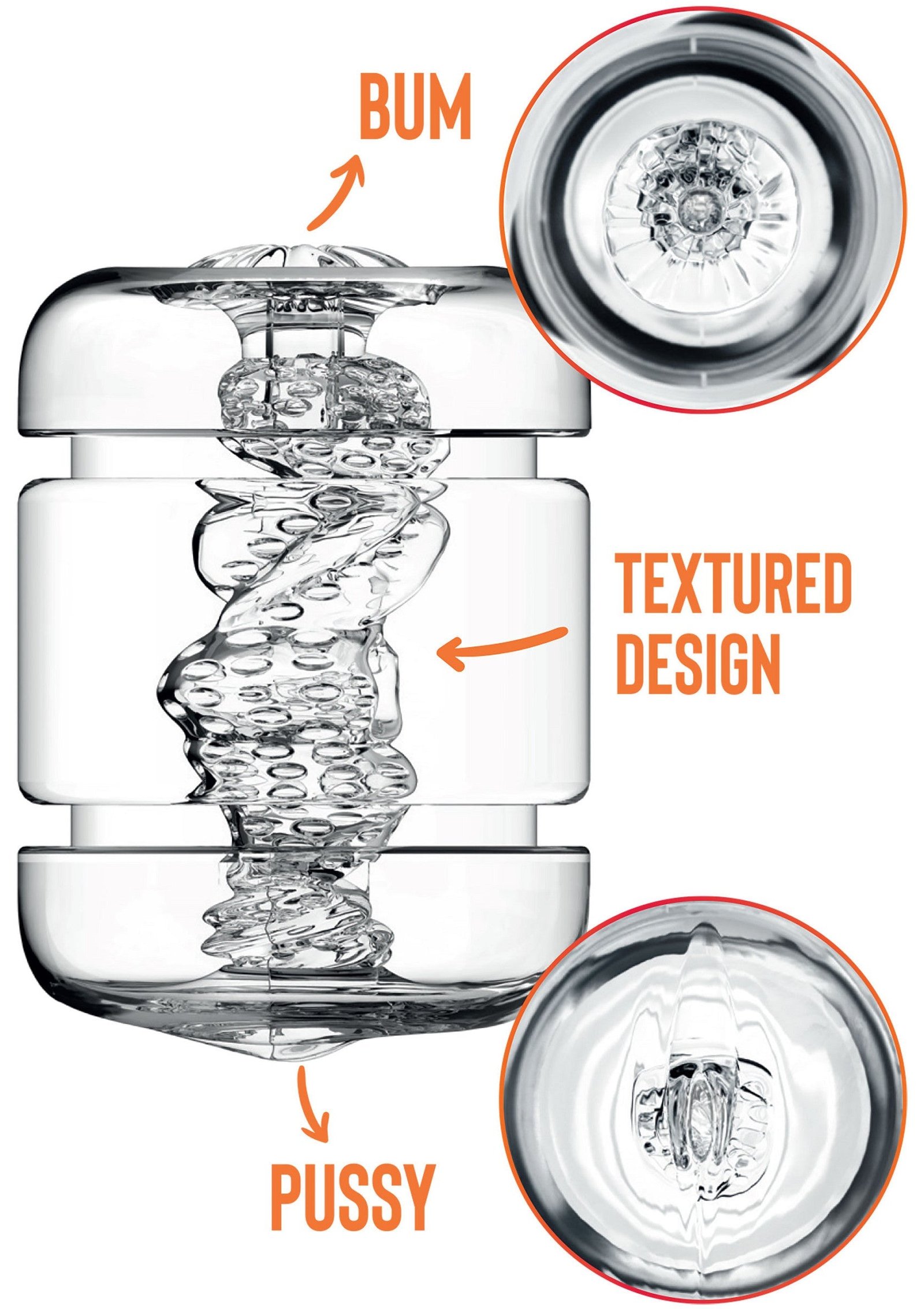 Ultimate Visual Pleasure: Soft Duo Sleeve Pussy and Bum. Experience heightened pleasure with PRIVATE Dual Sided Crystal Stroker. This unique masturbator offers tantalizing satisfaction, leaving you craving more with each stroke. With dual pleasure zones – one side with a seductive bum and the other with a captivating ass – indulge in your wildest fantasies and watch your pleasure in action. The ultra-soft, squeezable sleeve offers a snug fit, enhancing your experience. Its transparent design not only adds allure but lets you witness every sensation. With a textured interior, strategically placed ridges, bumps, and curves create a realistic experience. Elevate your pleasure with the epitome of visual stimulation from PRIVATE.