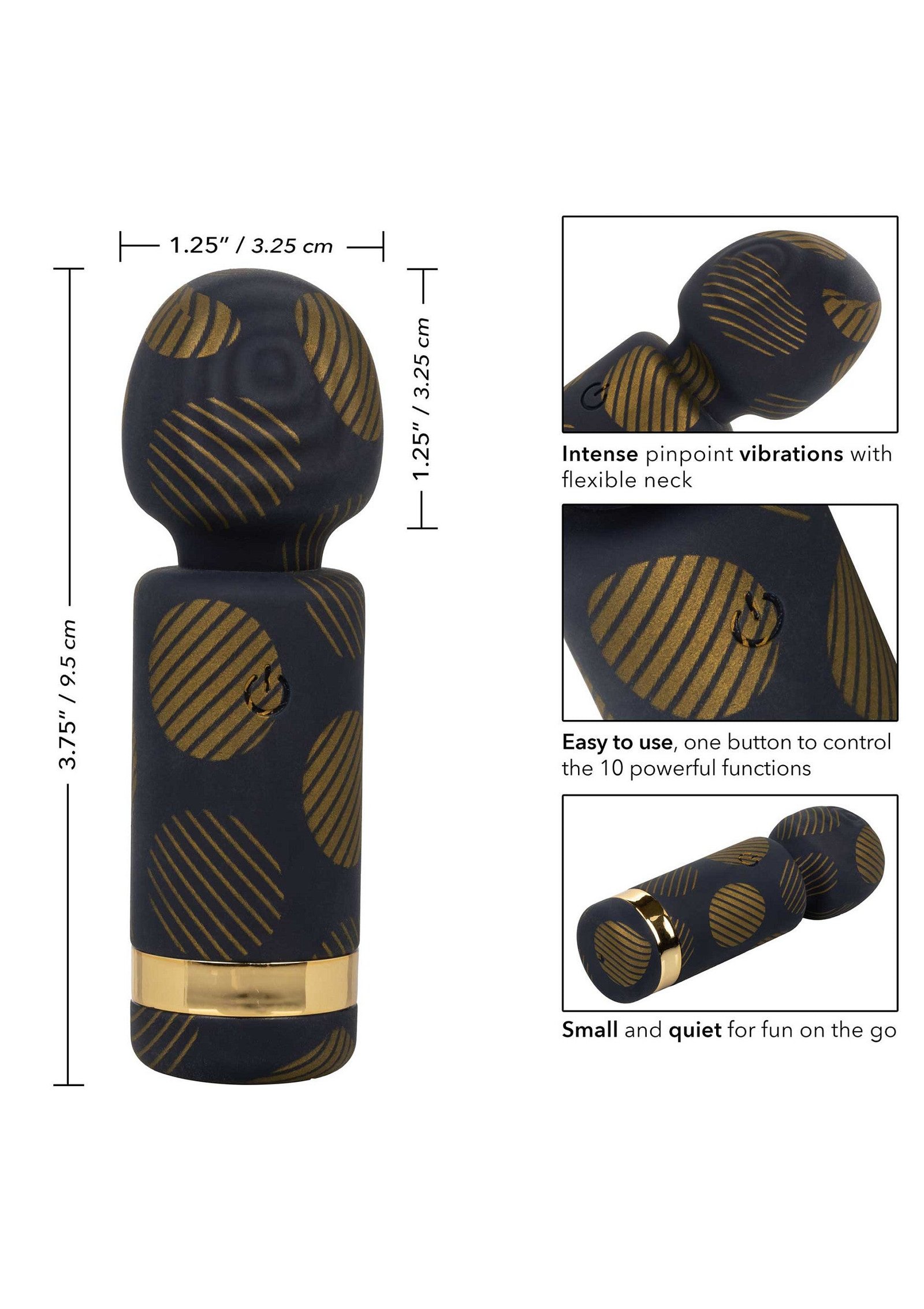 With a sleek gold finish, travel lock, and USB recharge, this 4” mini massager is both powerful and portable. Explore up to 2 hours of pleasure on the go—because great things come in teenie packages.