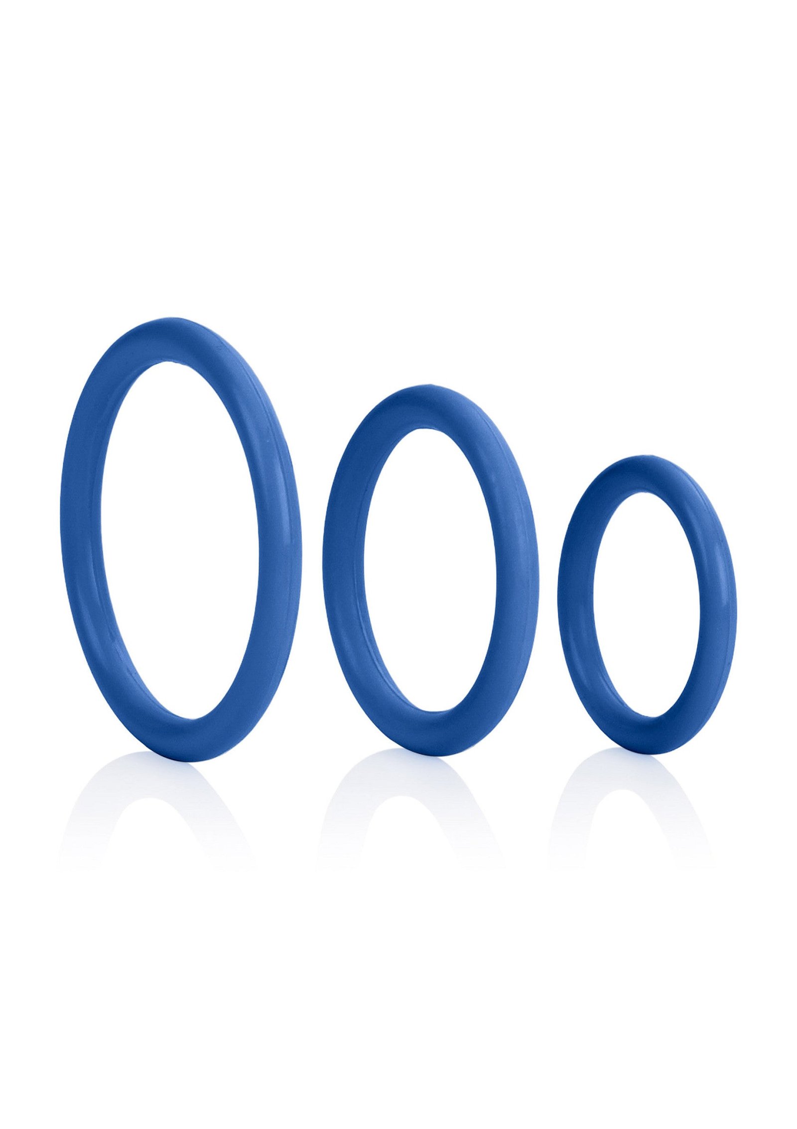 Triple your pleasure with the Tri-Rings set! These three stretchy rubber rings come in different sizes to offer customized erection support and stimulation. Use one or stack them for added intensity and harder, longer play.