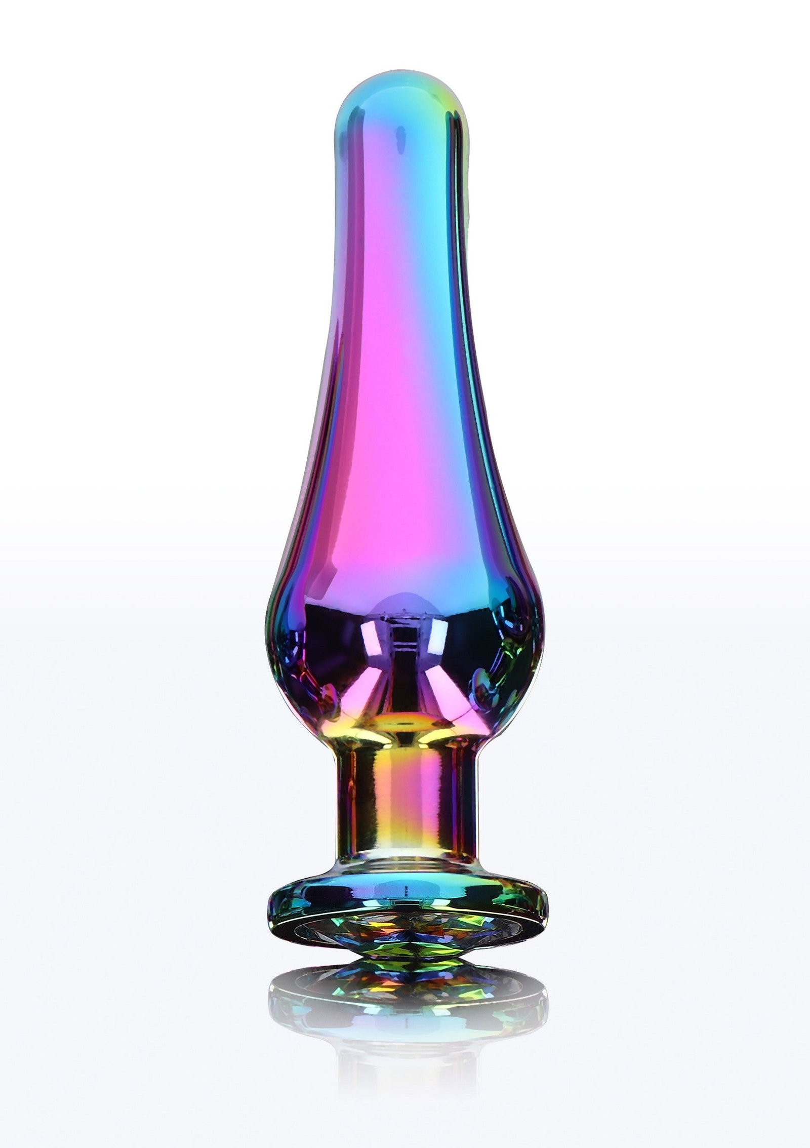 The Twilight Bum Bijou is a quality butt plug with rainbow jewel in the base, making your backdoor shine with colour! The sleek plug features a tapered silhouette and flared base, enhanced with a rainbow jewel. Made of aluminium, the Twilight Bum Bijou is smooth to the touch and completely body safe. A Must-have from the Anal Play collection by TOYJOY. It is the perfect unisex plug to add a glamorous and colourful twist to your anal adventures.